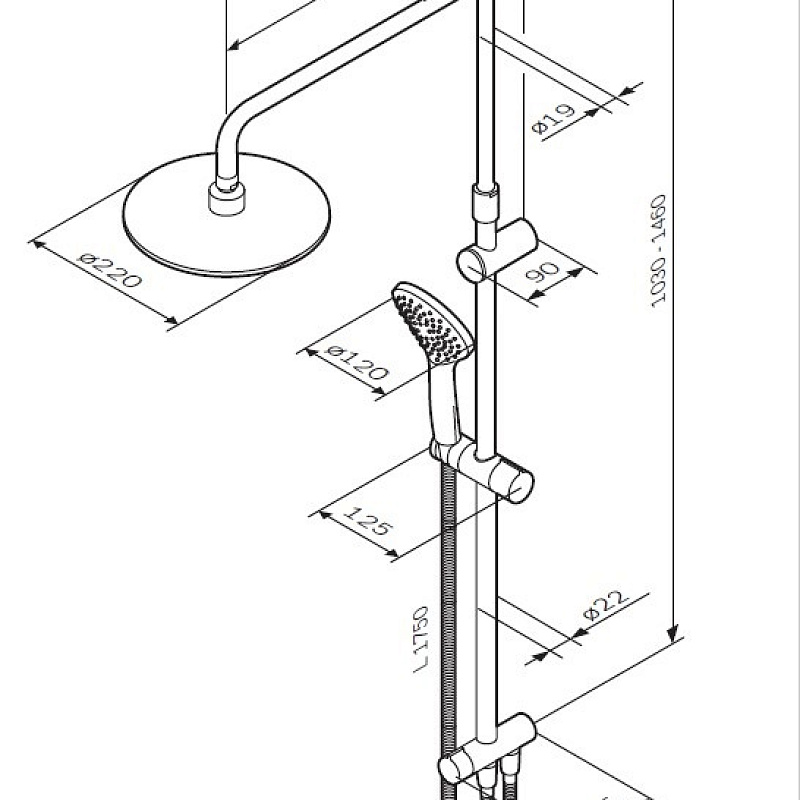 Душевой гарнитур AM.PM Like F0180064 штанга, шланг, лейка 3 режима, хром