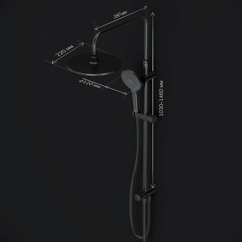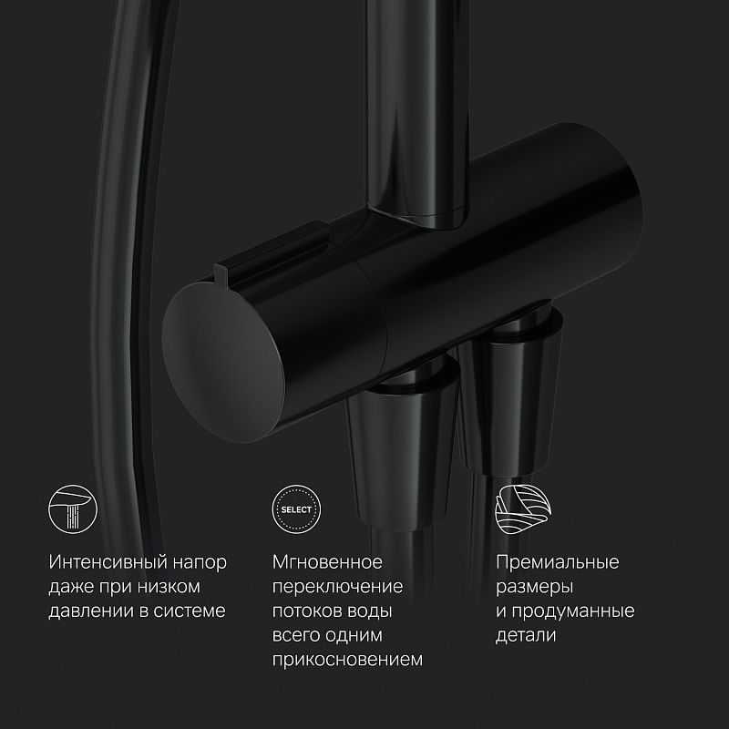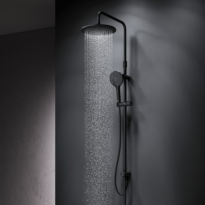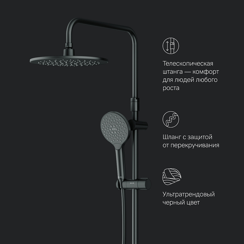 Душевая система AM.PM Like F0780222 стойка с тропическим душем, черная матовая
