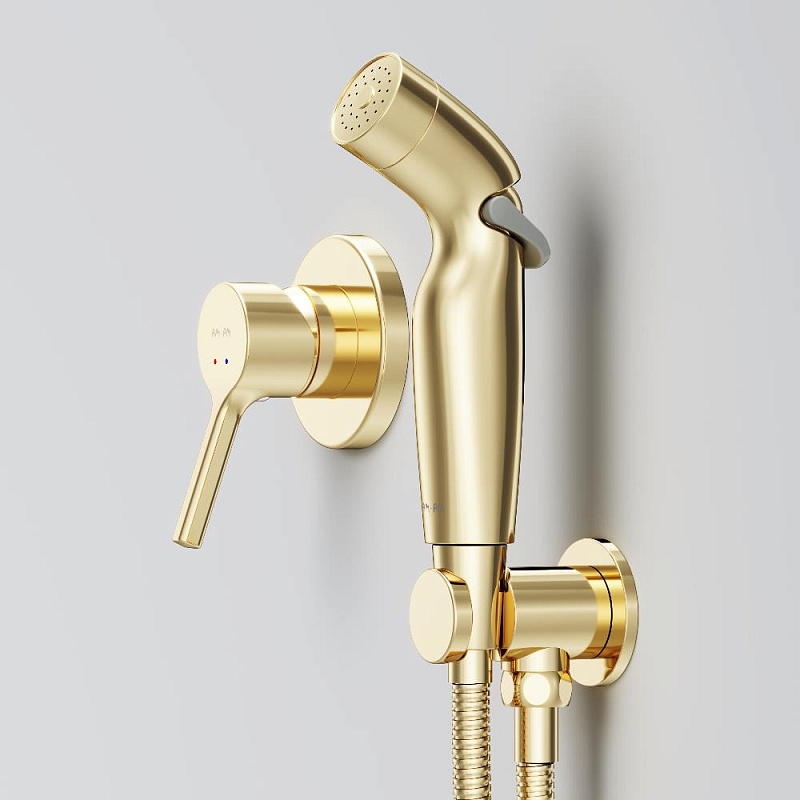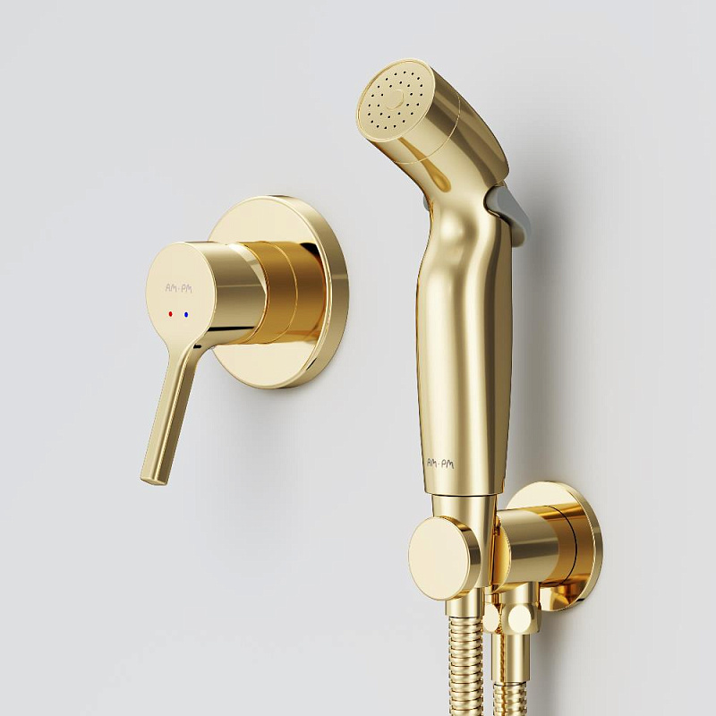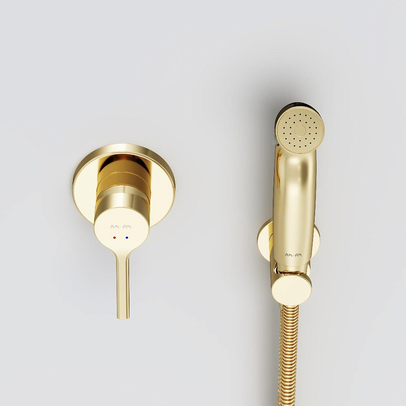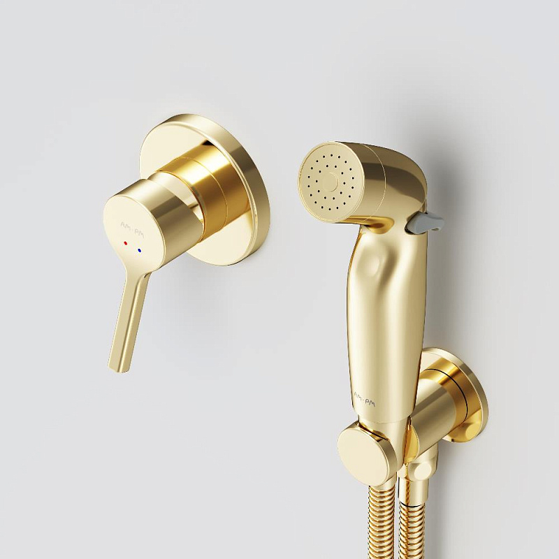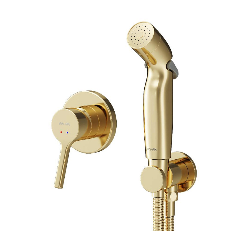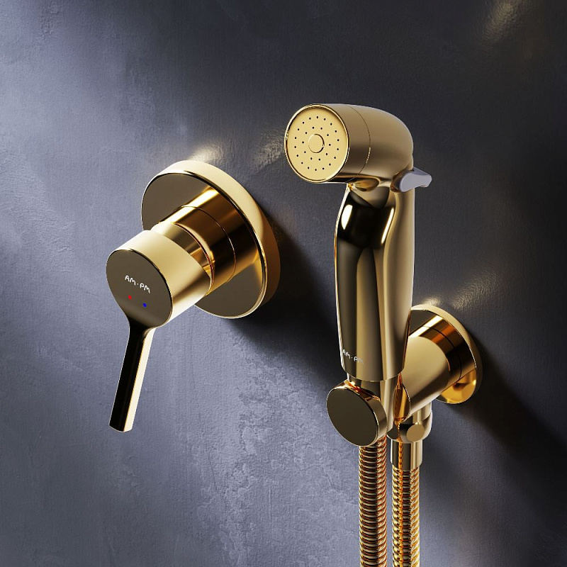 Гигиенический душ со смесителем AM.PM X-Joy S F40H85B99 золото встраиваемый, шланг 1200, держатель