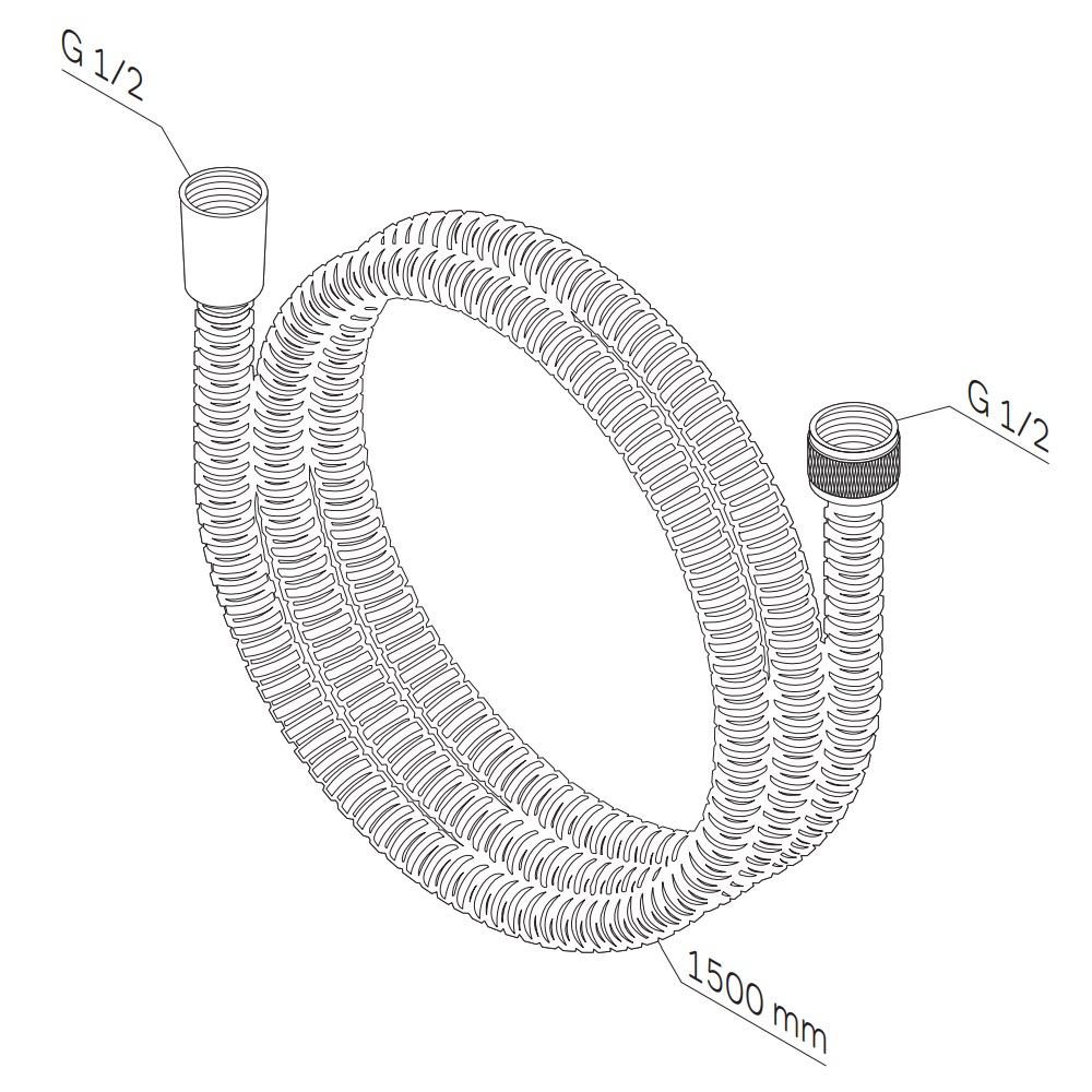 Душевой шланг от бренда АM.PM. Длина душевого шланга - 1500 мм. Материал изделия - нержавеющая сталь. Резьбовое соединение - G1/2.
