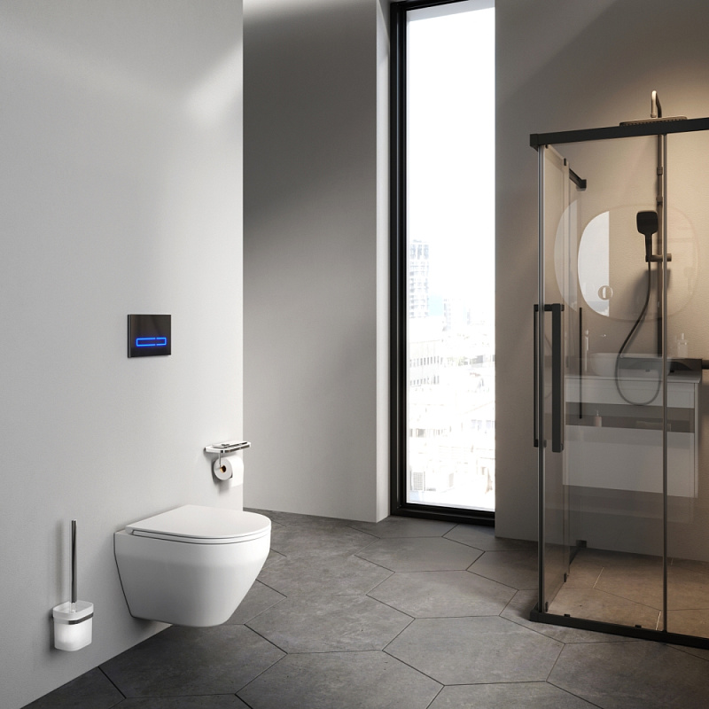 Унитаз подвесной безободковый с инсталляцией AM.PM Spirit V2.0 IS49038.701700MB сиденьем микролифт, черной пневм. клавишей