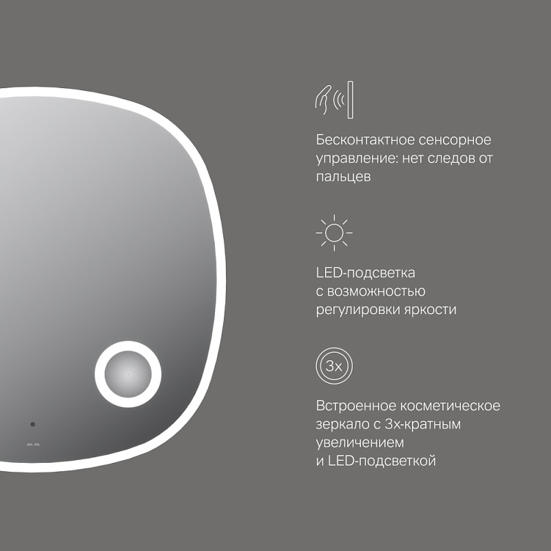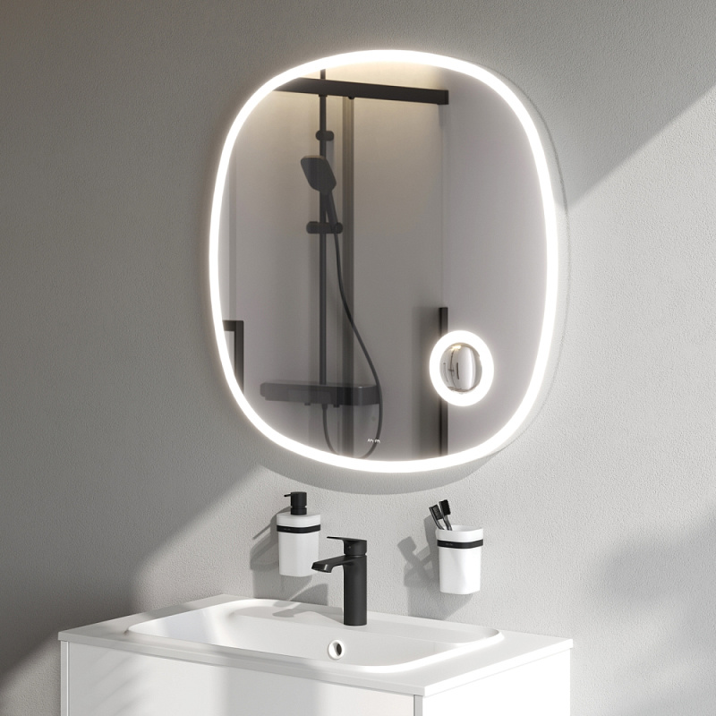 Зеркало с подсветкой в ванную закругленное 80 AM.PM Func M8FMOX0803SA с косметическим зеркалом сенсорное
